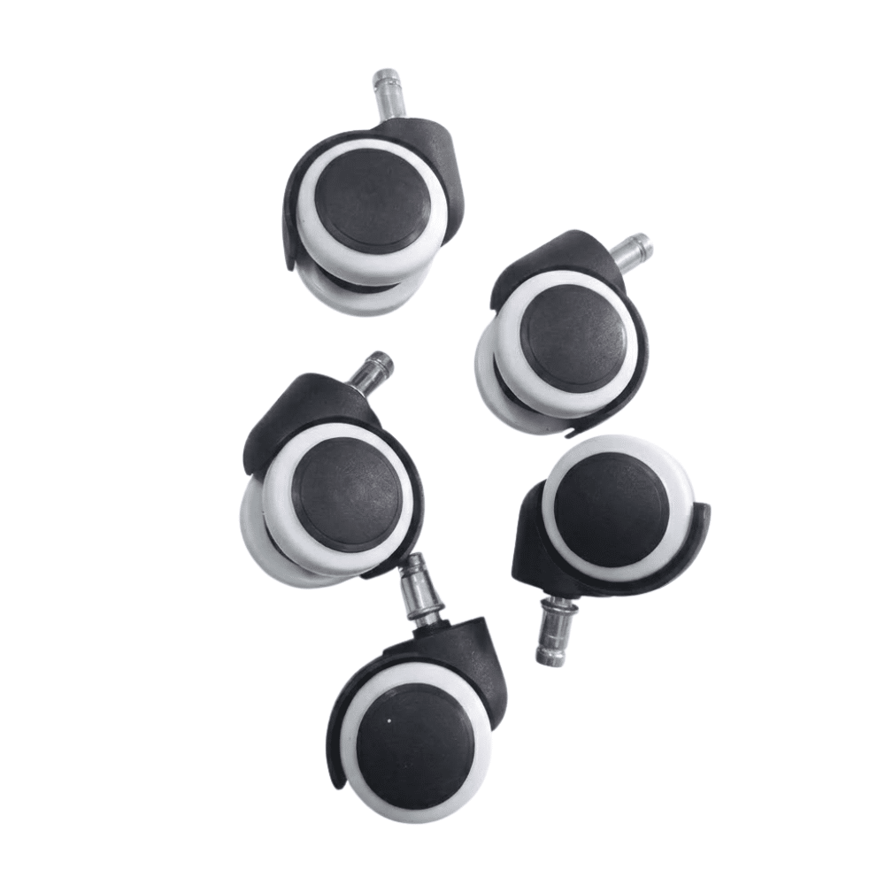 Replacement office chair caster wheel set with an elegant white × black design, suitable for replacing old or damaged wheels. It provides smooth movement while protecting floors and reducing scratches during daily use.