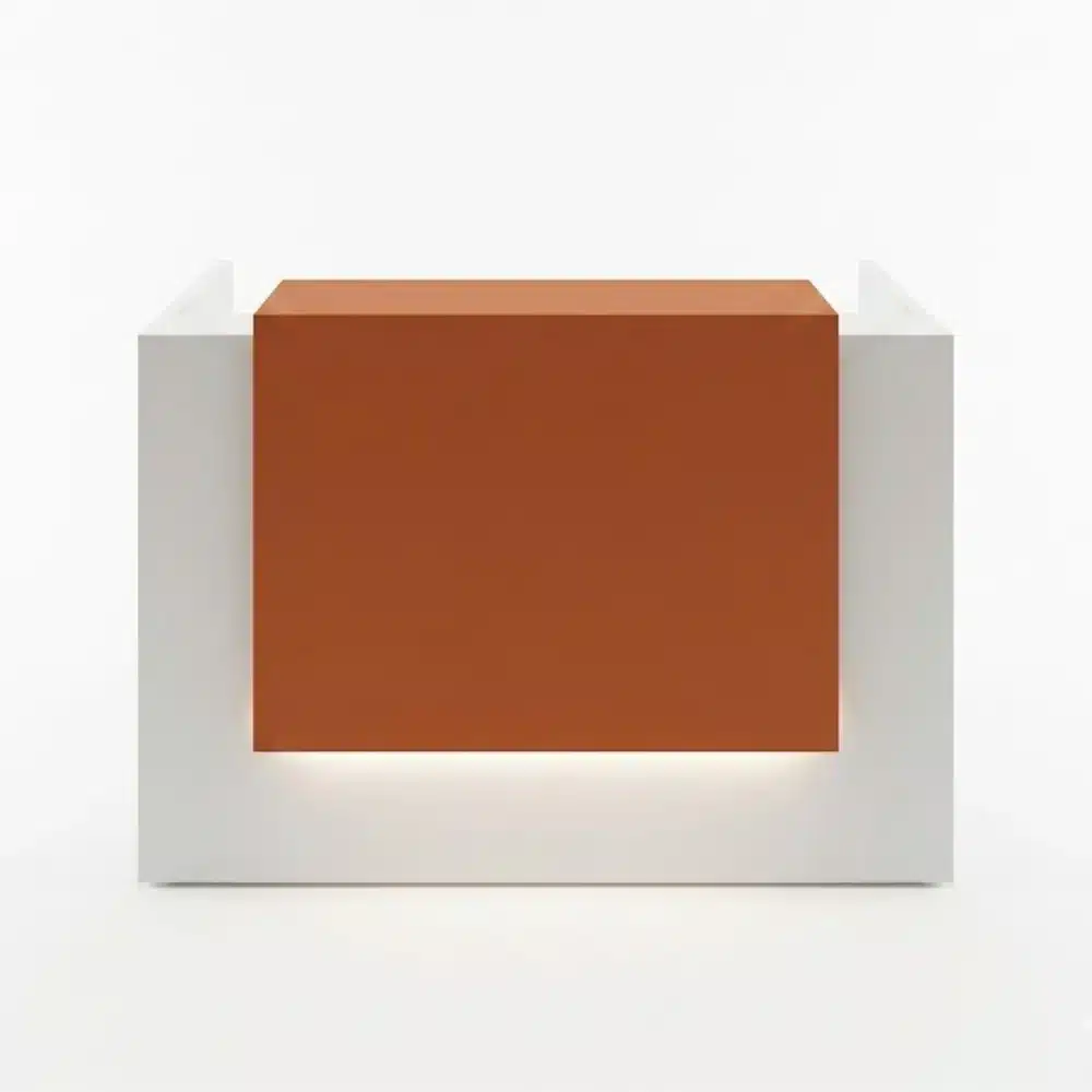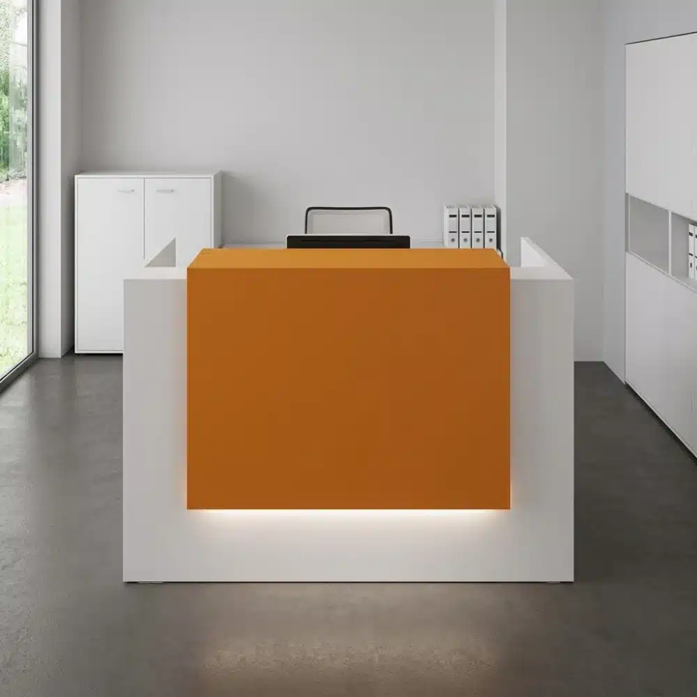 A modern and practical counter designed for reception areas and companies, providing a comfortable workspace for customer service. It offers customizable color options to match the interior décor and is made from high-quality Spanish wood.