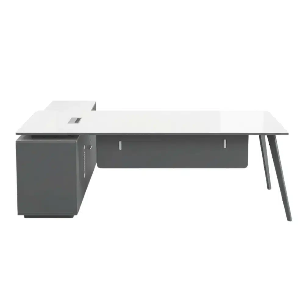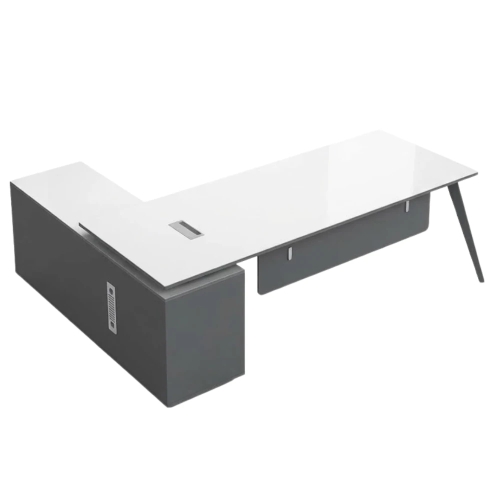 Executive acrylic wood desk 220 by 85 cm with side unit modern and elegant provides spacious workspace with easy organization of files and tools made from durable glossy material easy to clean suitable for administrative offices companies and work rooms
