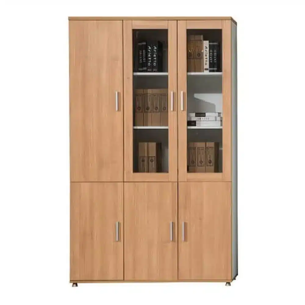 Wooden cabinet with glass (4 doors) – Size 200 × 80 cm, a modern design that combines elegance with practical storage. It offers easy visibility of contents with high durability, making it suitable for homes and offices.