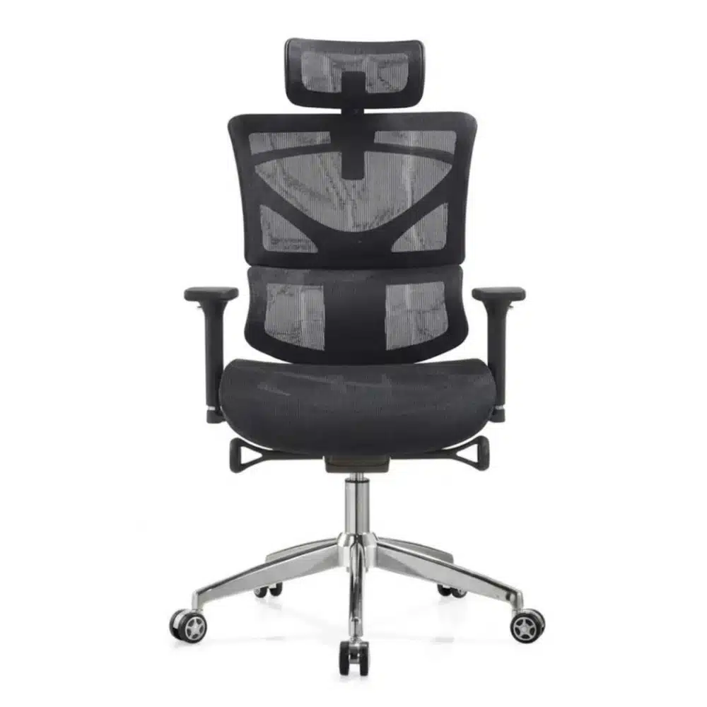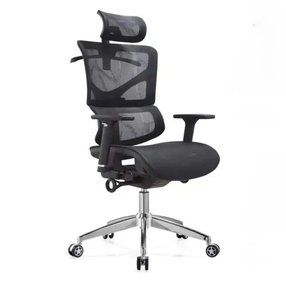 Professional chair designed to support the body and spine during long sitting, featuring an adjustable backrest, adjustable armrests, and a movable base to provide maximum comfort and control over your sitting position, ideal for offices, companies, and daily use.