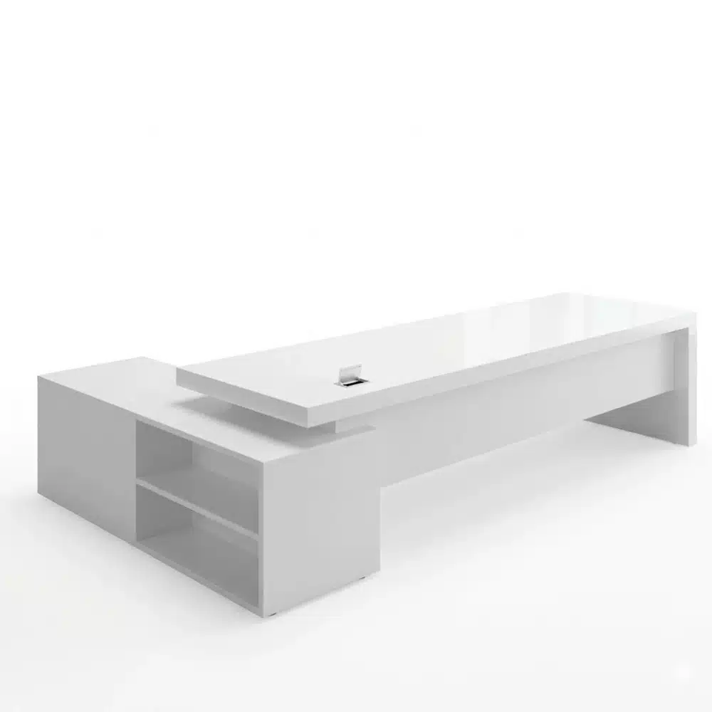 An executive desk with a practical and elegant design that provides a spacious work area with a large bookcase that helps organize files and books neatly made of high quality Spanish MDF combining durability with a professional look suitable for administrative offices