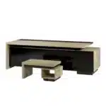 Complete manager desk set combining a spacious workspace, a practical front panel, and a 2-piece bookshelf for organized storage of files and books, ideal for creating a professional and comfortable work environment in executive offices and workrooms