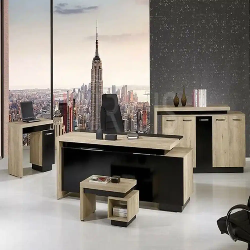 Executive desk 180 cm with chair set including credenza and coffee table practical and elegant design provides comfortable workspace with comfortable chairs and additional table for organized office suitable for administrative offices and companies