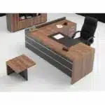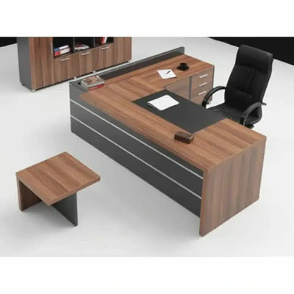 Executive Spanish wooden desk 2 meters with side table practical and elegant provides spacious workspace and file organization made from durable wood for stability and long lasting use suitable for administrative offices companies and work rooms