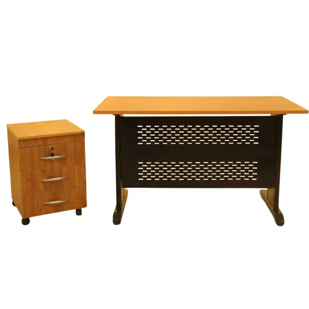 Spanish MDF wood desk scratch resistant with a 3 drawer unit and electrostatic coated metal frame