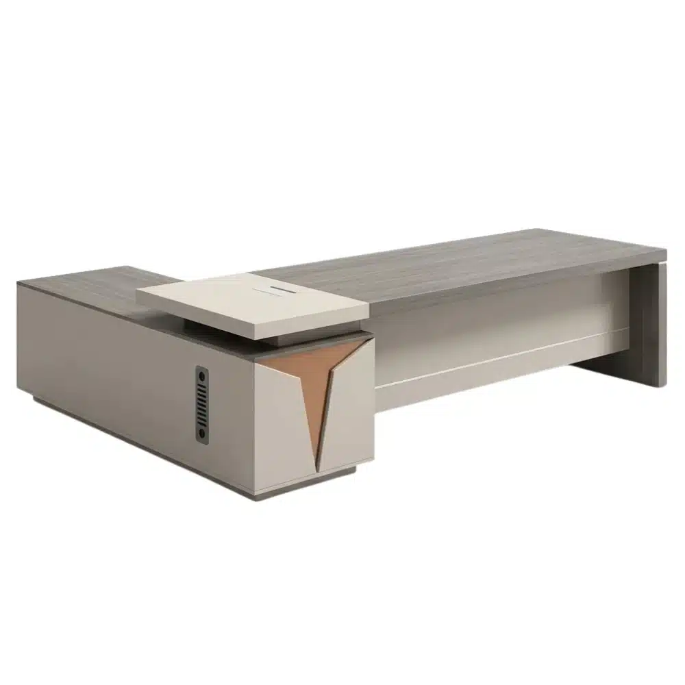 Practical and elegant manager desk provides a spacious work area and easy organization for files and tools made from high quality Spanish MDF wood combining durability with a professional look suitable for executive offices with a 3 year warranty on wood quality