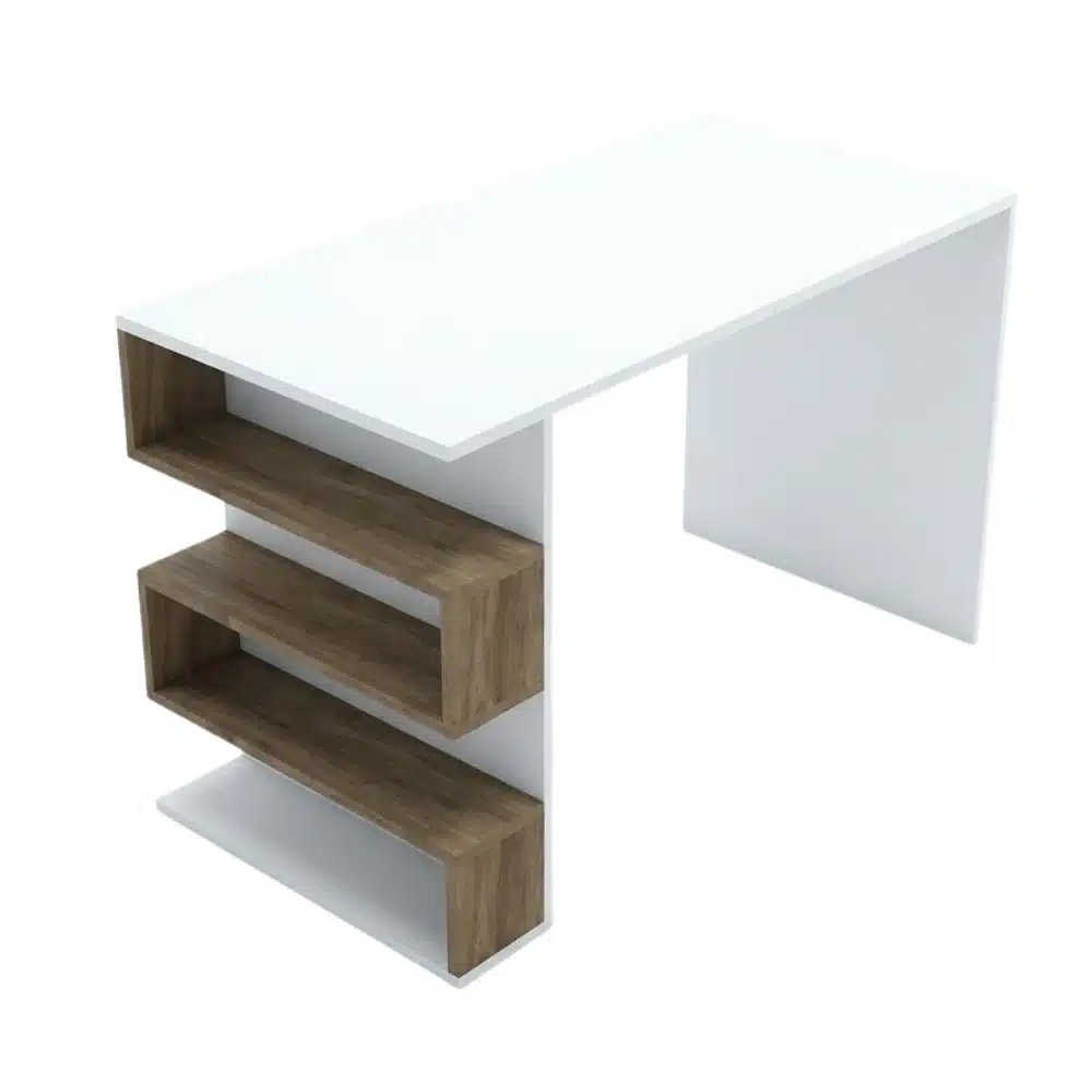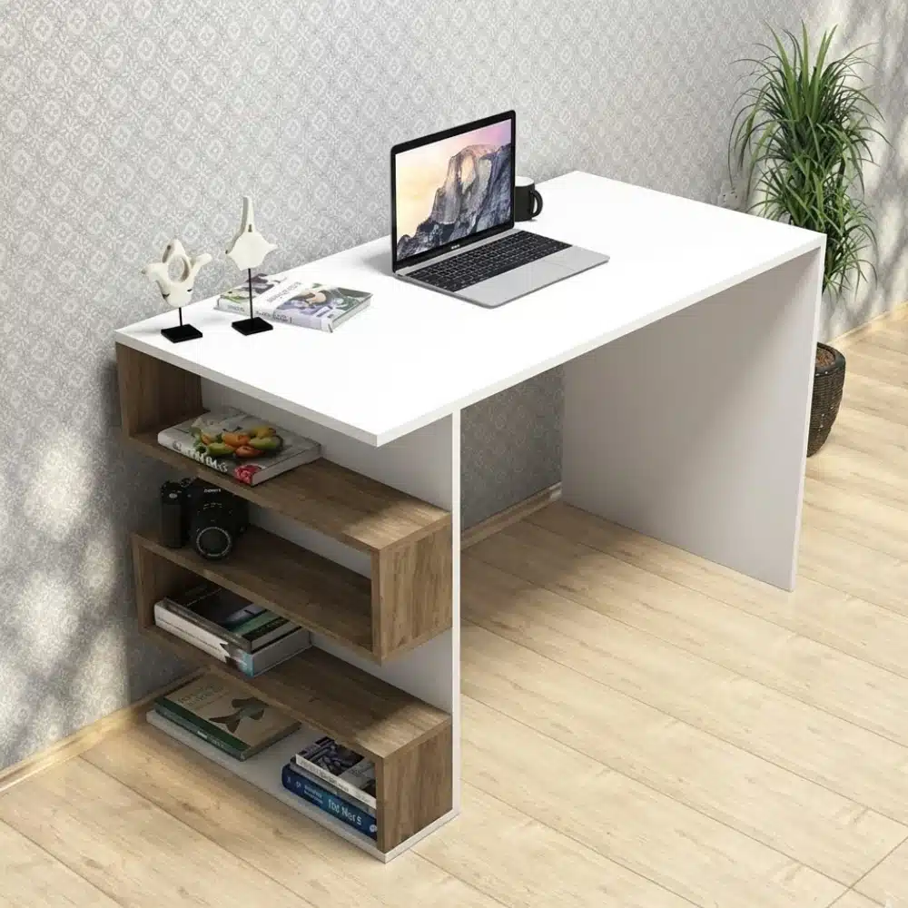 Practical desk with an elegant design suitable for small spaces comes with a bookshelf that helps organize books and files neatly made of high quality Spanish wood combining durability and a modern look