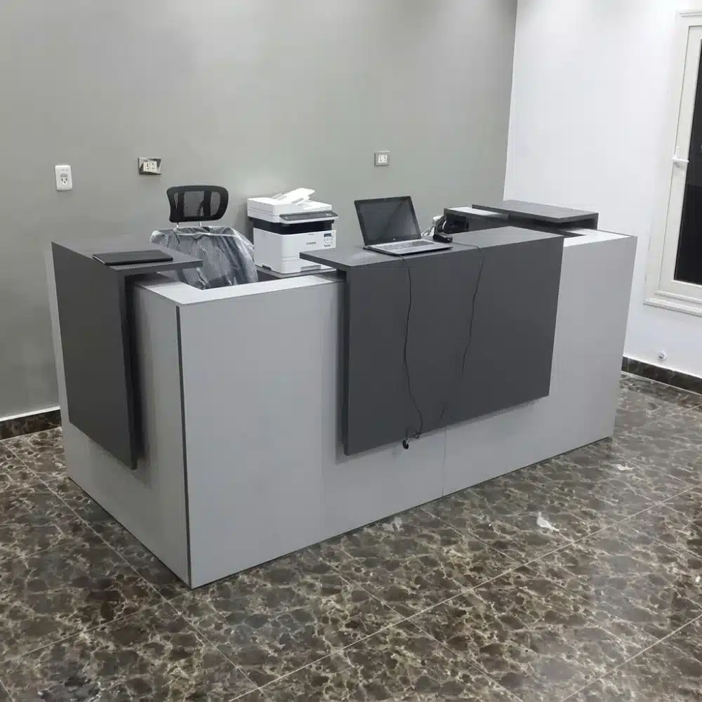 كونتر بتصميم مودرن وعملي، مناسب لمناطق الاستقبال والشركات، بيوفر شكل مميز بثلاث واجهات تشطيب أنيقة، مع مساحة عمل مريحة وخامات قوية تتحمل الاستخدام اليومي.