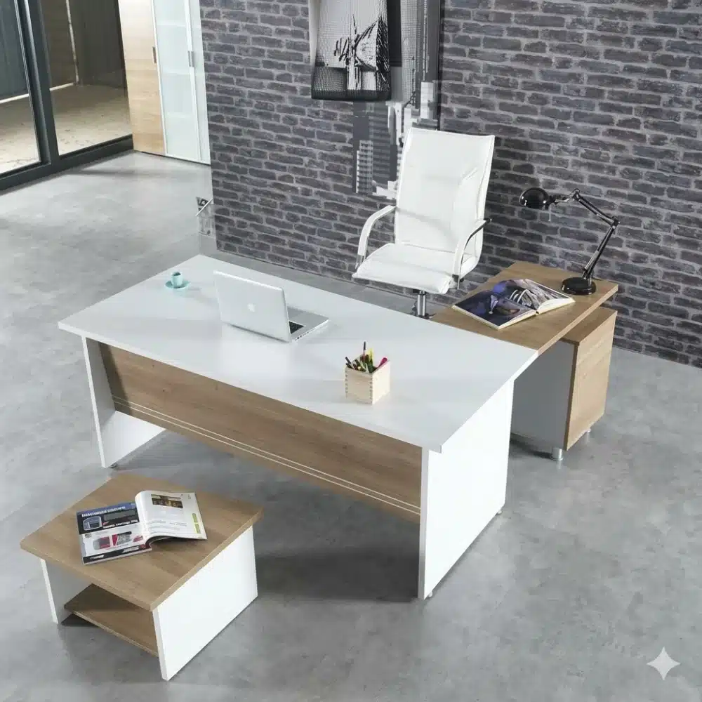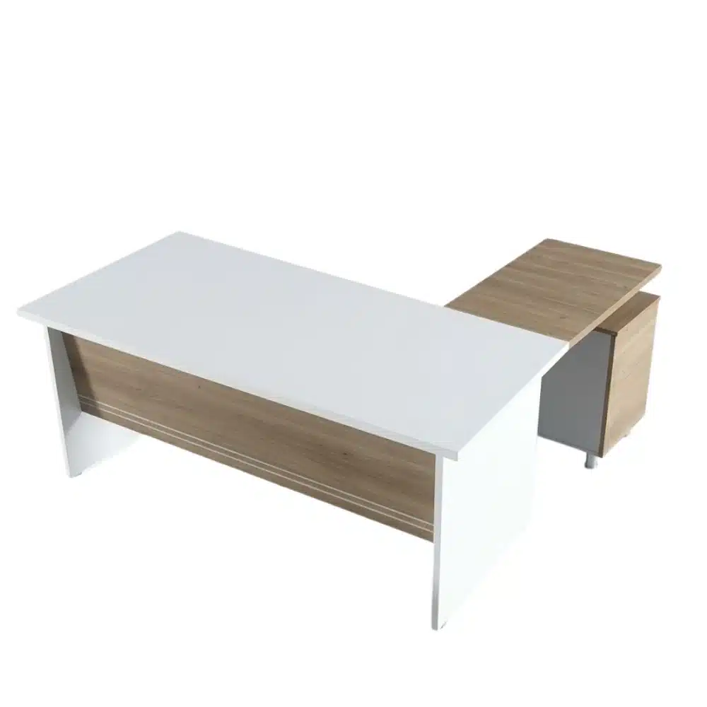 مكتب عملي بتصميم أنيق يوفر مساحة مريحة للعمل أو المذاكرة، مع سايد جانبي لتنظيم الملفات وترابيزة إضافية تساعد على ترتيب الأدوات وتكمل مساحة العمل بشكل منظم.