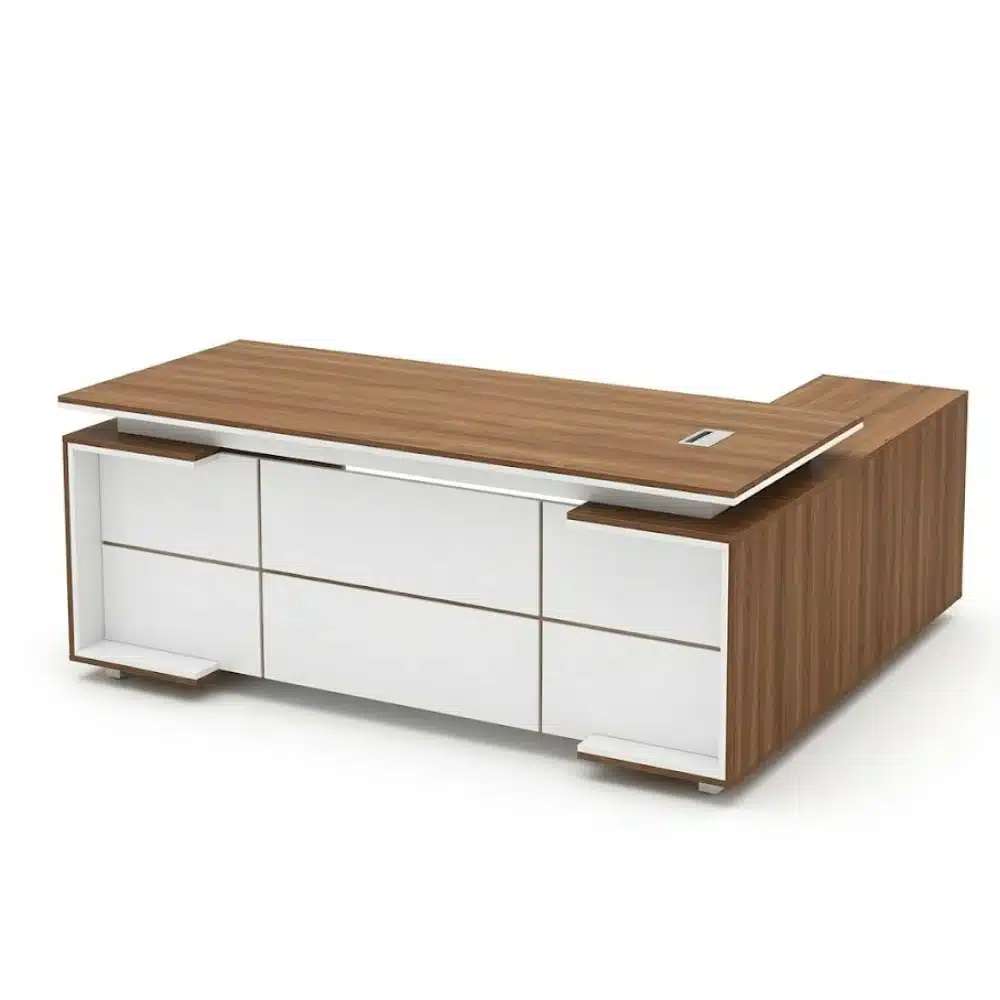 مكتب خشب MDF إسباني مقاس 180 × 80 سم مع سايد جانبي، عملي وأنيق، يوفر مساحة مريحة للعمل وتنظيم الملفات، مصنوع من خامة متينة لضمان الثبات والمتانة، مناسب للمكاتب الإدارية والشركات وغرف العمل.