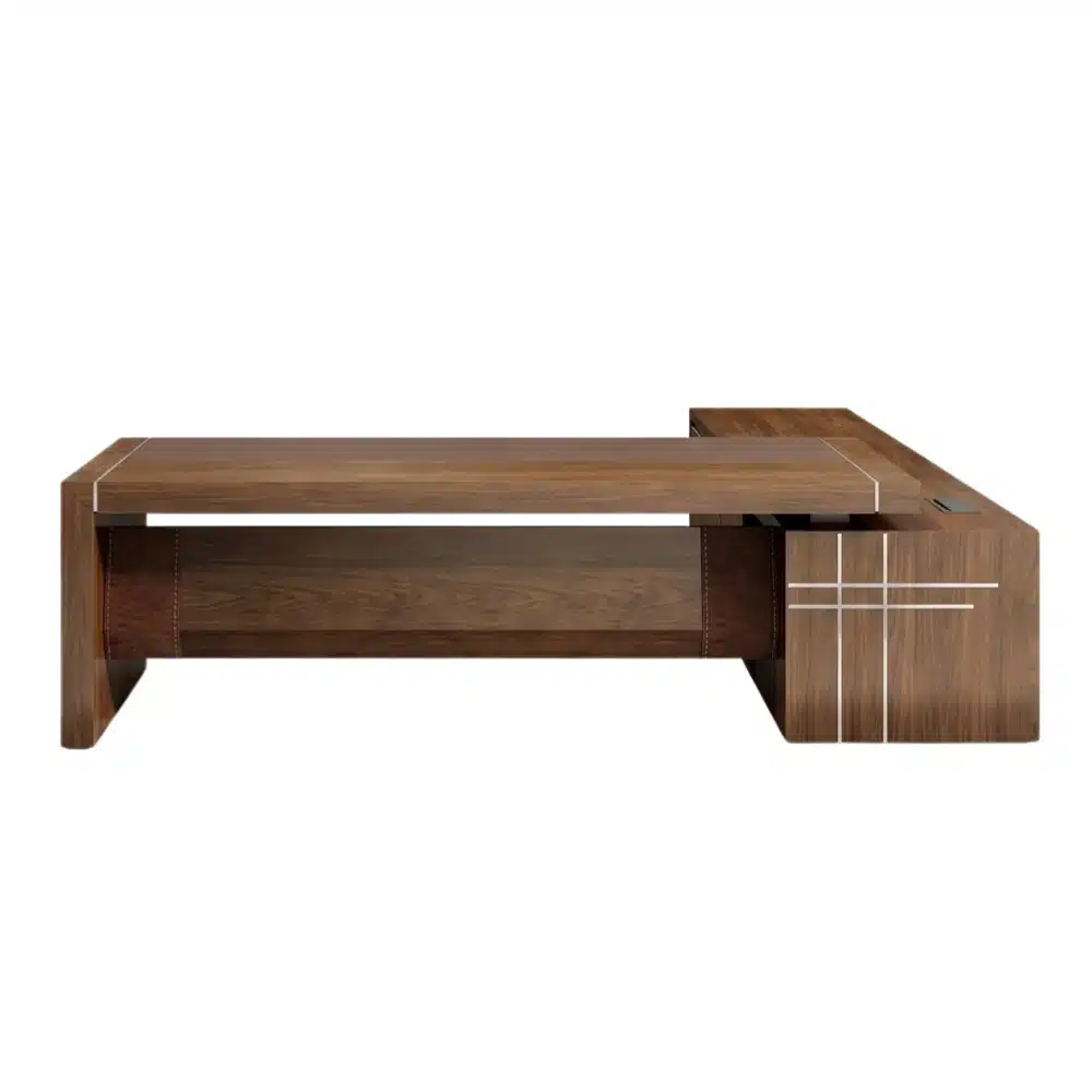 مكتب مدير خشب إسباني مقاس 220 × 85 سم مع سايد جانبي، عملي وأنيق، يوفر مساحة واسعة لتنظيم الكمبيوتر والملفات، مصنوع من خشب متين لضمان الثبات والمتانة، مناسب للمكاتب الإدارية والشركات وغرف العمل.