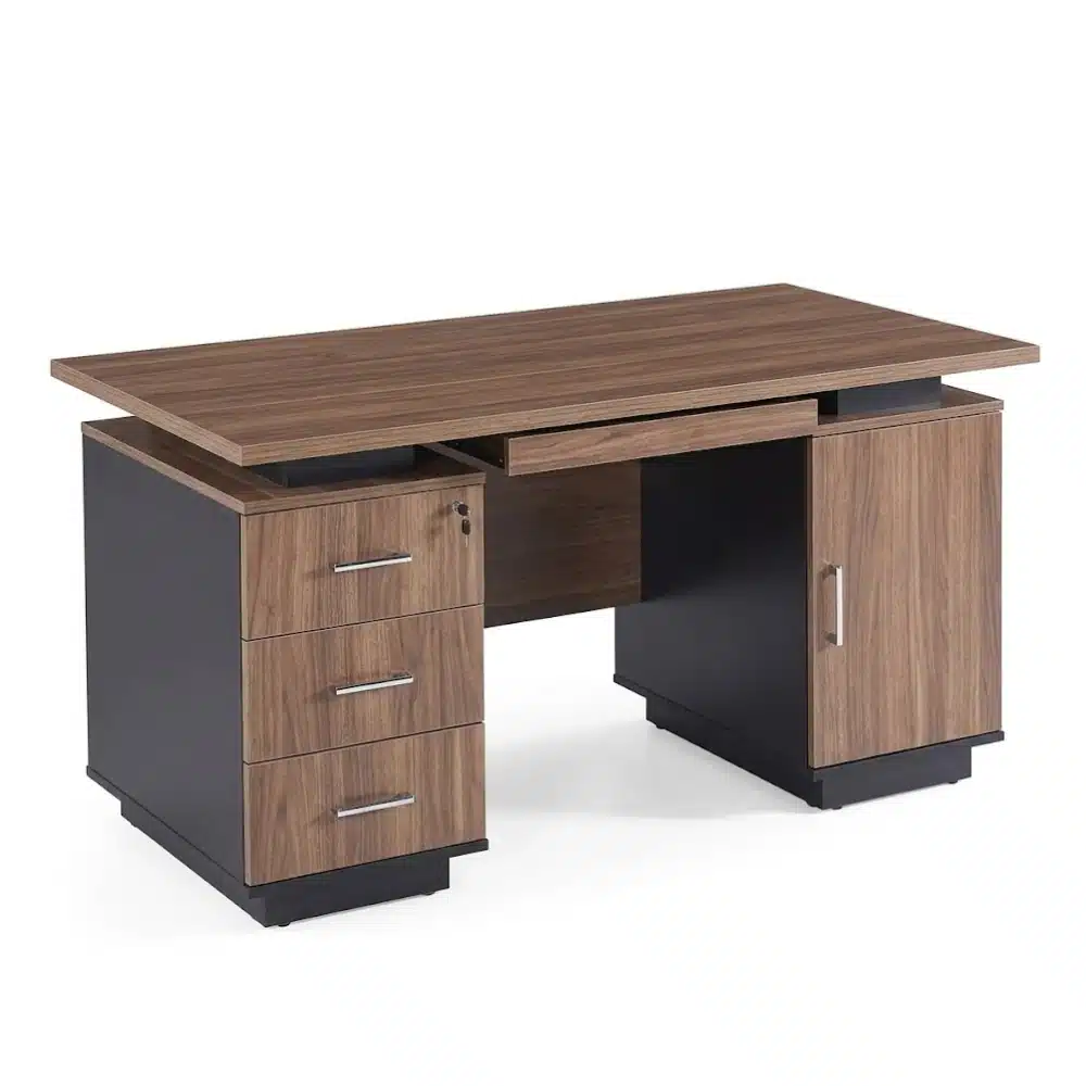 مكتب خشب MDF إسباني مقاس 140 × 60 سم مع 3 درج ودرفه
