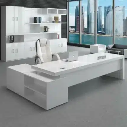 مكتب عملي بتصميم أنيق يوفر مساحة مريحة للعمل أو المذاكرة، مصنوع من خشب MDF إسباني عالي الجودة مع سايد جانبي يساعد على تنظيم الملفات والأدوات بشكل أفضل ويمنح المكتب مظهرًا احترافيًا.