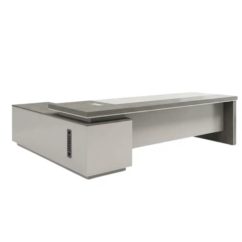 مكتب مدير مقاس 220 × 85 سم خشب أكريليك مع سايد جانبي