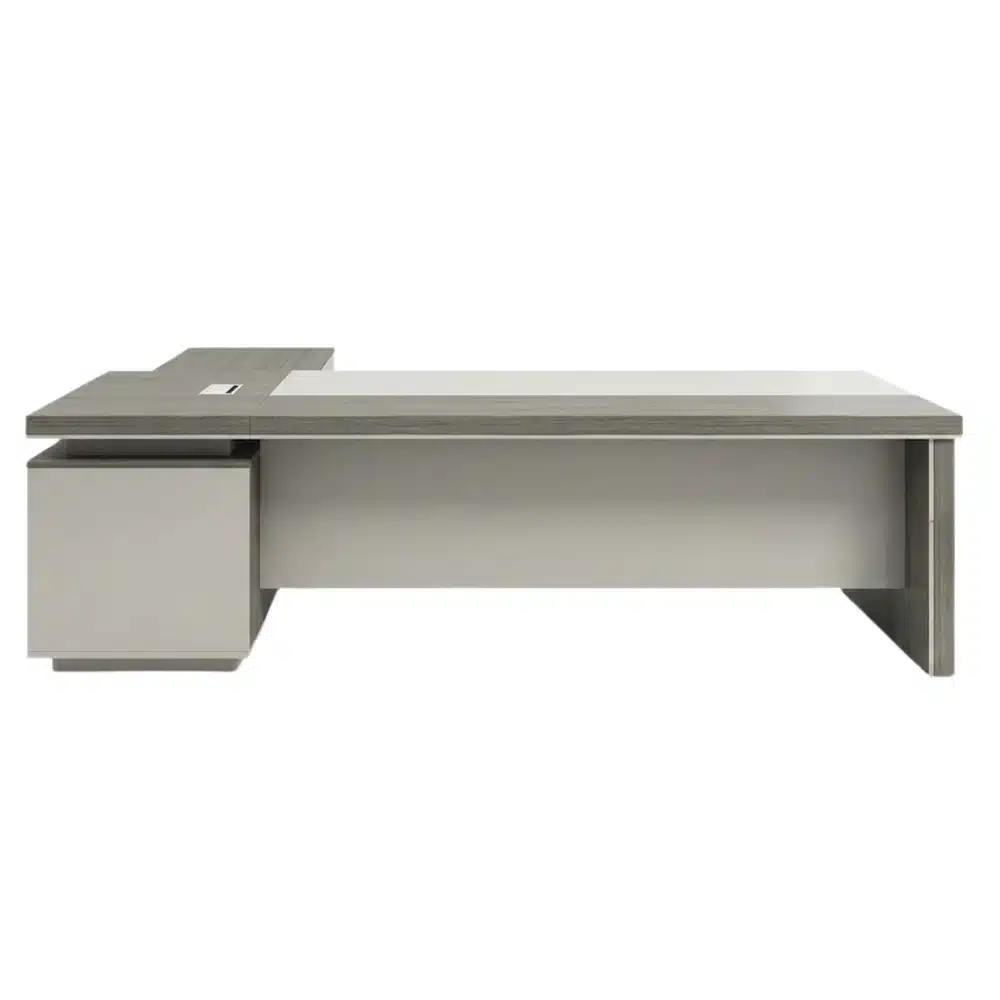 مكتب مدير خشب أكريليك مقاس 220 × 85 سم مع سايد جانبي، عصري وأنيق، يوفر مساحة واسعة للعمل مع تنظيم الملفات والأدوات بسهولة، مصنوع من خامة متينة ولامعة سهلة التنظيف، مناسب للمكاتب الإدارية والشركات وغرف العمل.
