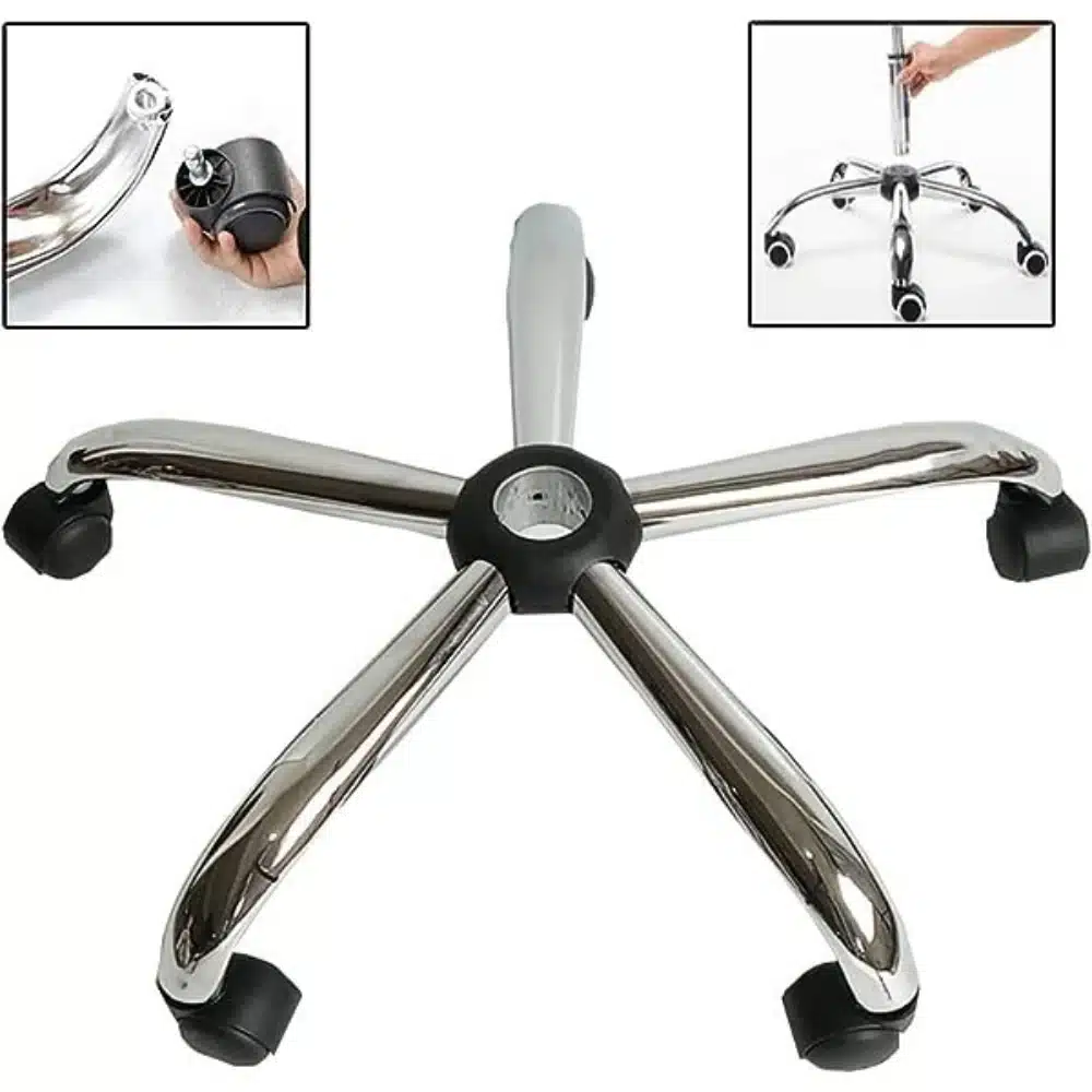 قاعدة كرسي مكتب (نجمة) مصنوعة من معدن قوي بتصميم عملي وصلب، بتدي إحساس بالقوة والثبات وبتتحمل الاستخدام الشاق في المكاتب وكراسي المدير، وبتناسب الكراسي اللي محتاجة اعتمادية عالية وحركة ثابتة بدون اهتزاز.