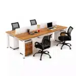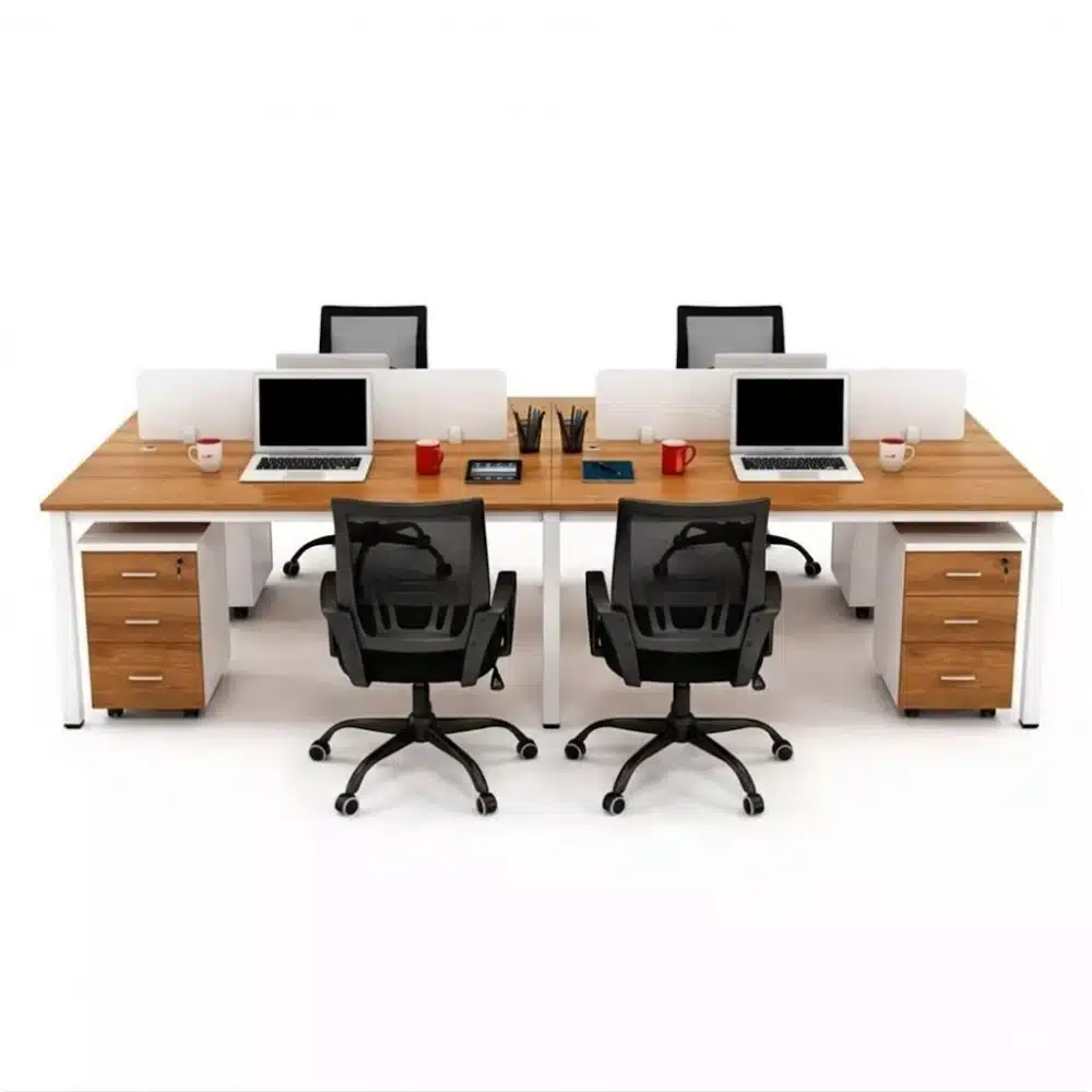 وحدة خلية مكاتب جماعية خشب إسباني مقاس 240 × 120 سم مع 4 وحدات أدراج