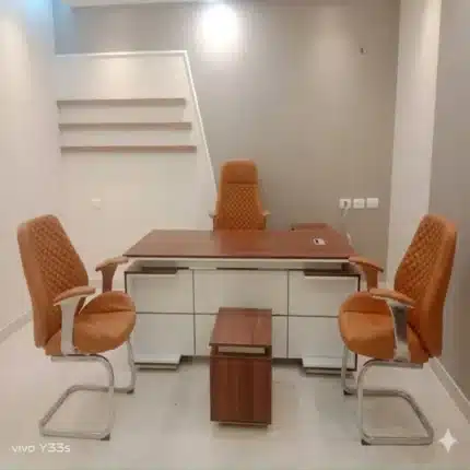 مكتب مقاس 180 × 85 سم مع سايد جانبي وكراسي وترابيزة، طقم عملي ومتكامل يوفر مساحة مريحة للعمل مع تخزين إضافي وتنظيم أفضل، مناسب للمكاتب الإدارية والشركات وغرف العمل.
