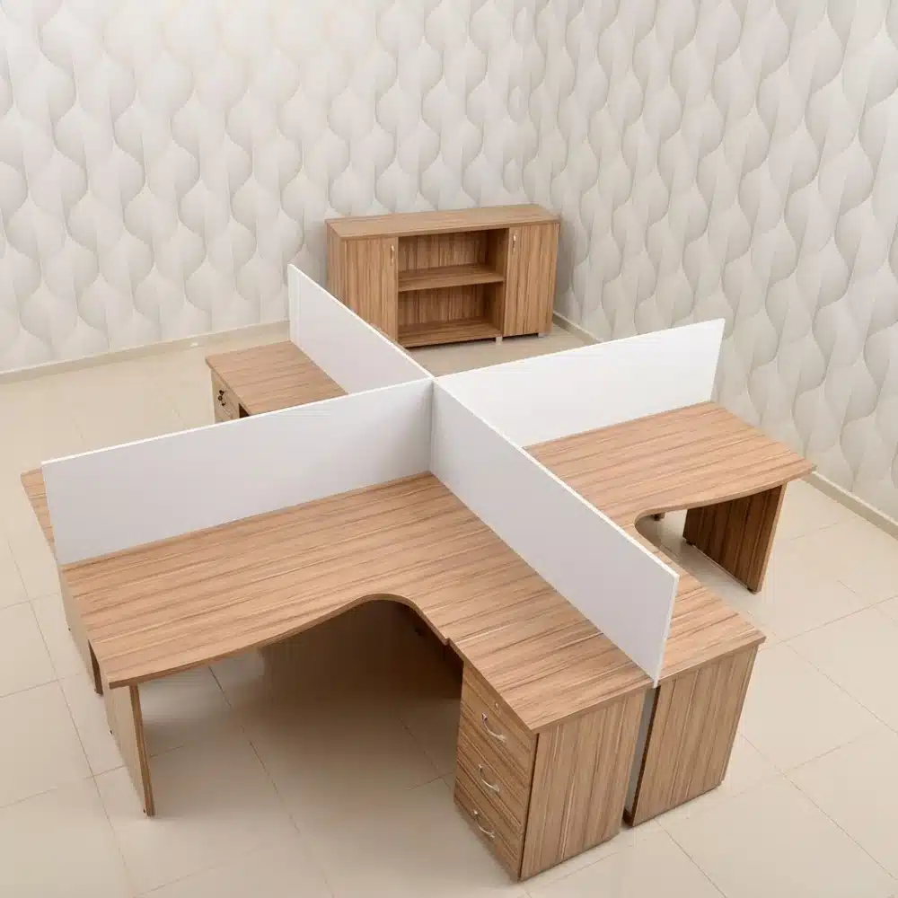 🔹 4 وحدات أدراج عملية: توفر مساحة تخزين كافية للملفات والأدوات لكل مستخدم.