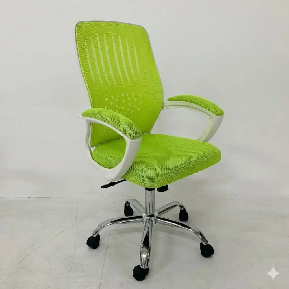 كرسي عملي بتصميم عصري يجمع بين الراحة والمتانة، يتميز بلون زيتوني أنيق مع ظهر فريم نجمة معدن يمنح ثباتًا عاليًا وشكلًا احترافيًا مناسبًا للمكاتب وغرف العمل.