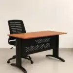 مكتب عملي بتصميم عصري مناسب للمساحات الصغيرة، مصنوع من خشب إسباني عالي الجودة مع هيكل حديد مطلي، ويأتي مع كرسي مريح ليمنحك تجربة عمل متكاملة تجمع بين الراحة والمتانة.