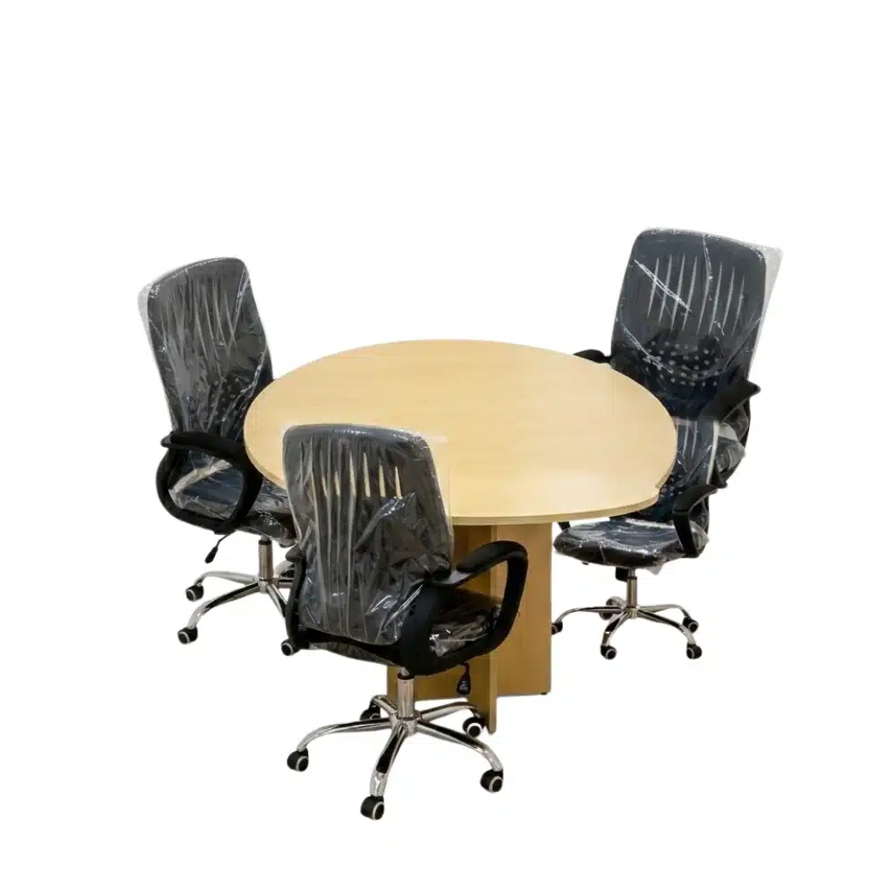 ترابيزة اجتماعات بتصميم دائري عملي ومودرن، مناسبة للمكاتب وغرف الاجتماعات الصغيرة، بتوفر مساحة مريحة للنقاش والعمل الجماعي، ومصنوعة من خشب إسباني عالي الجودة يتحمل الاستخدام اليومي.