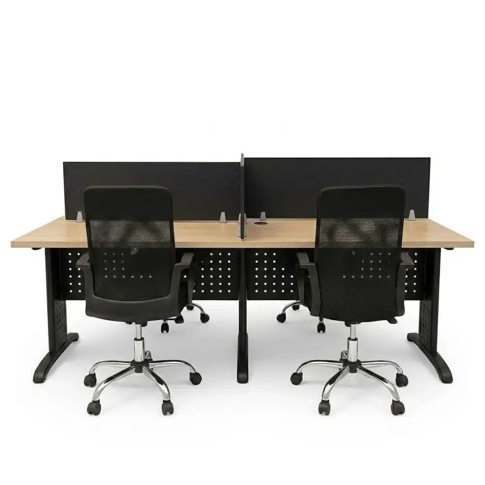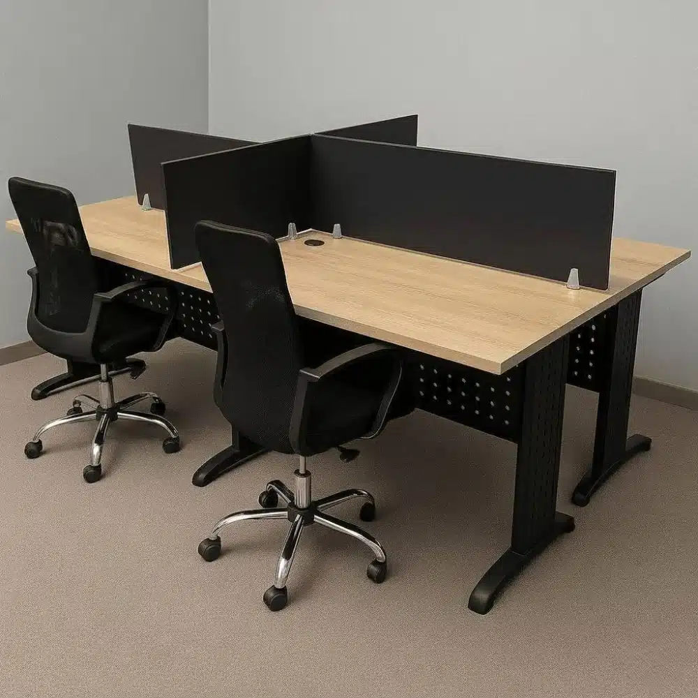 وحدة عمل جماعية بتصميم عملي ومودرن، مناسبة للمكاتب والشركات، بتوفر مساحة عمل مريحة مع تنظيم جيد للمستخدمين، ومصنوعة من خشب MDF إسباني عالي الجودة مع هيكل حديد قوي لزيادة المتانة والثبات.
